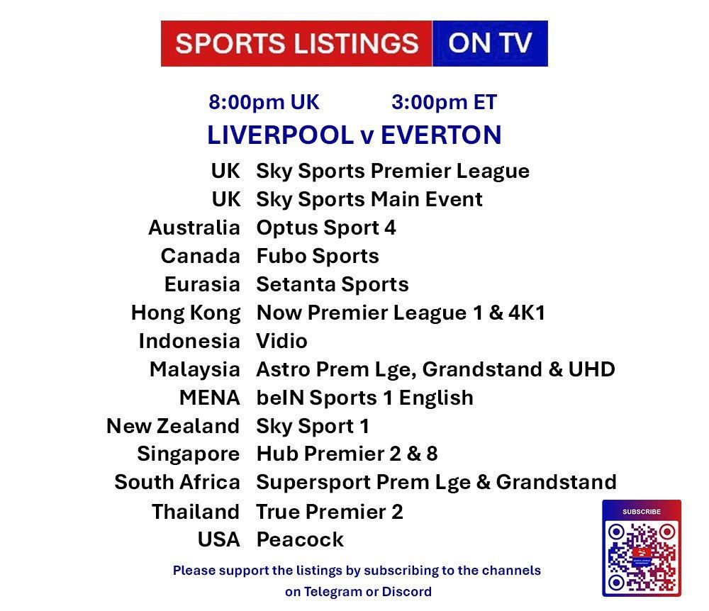 | 20:00 | Liverpool v Everton | Premier League | Sky Sports Main Event, Sky Sports Premier League, Sky Sports Ultra HDR |