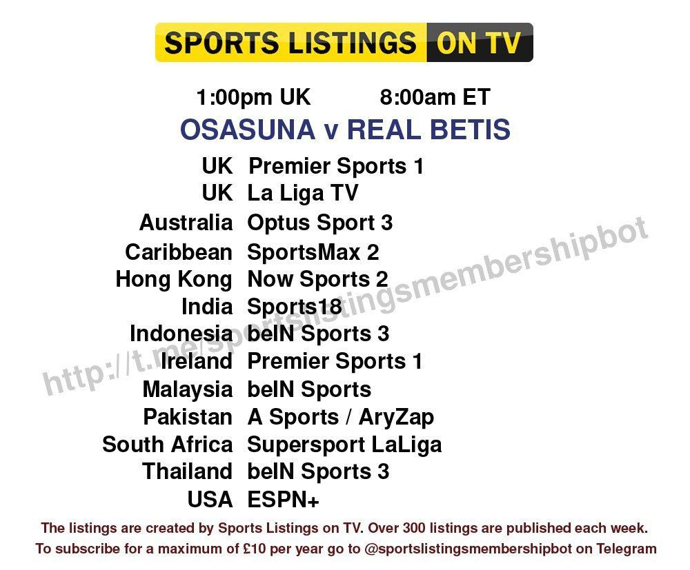 | 13:00 | Osasuna v Real Betis | La Liga | Premier Sports 1LALIGATV |