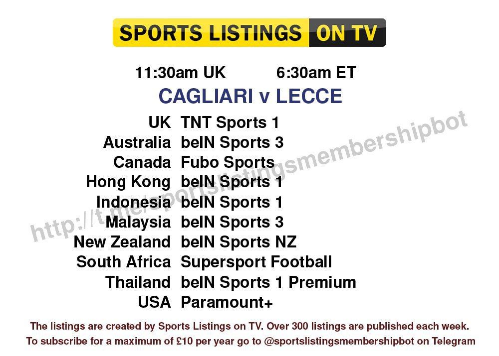 | 11:30 | Cagliari v Lecce | Serie A | TNT Sports 1 |
