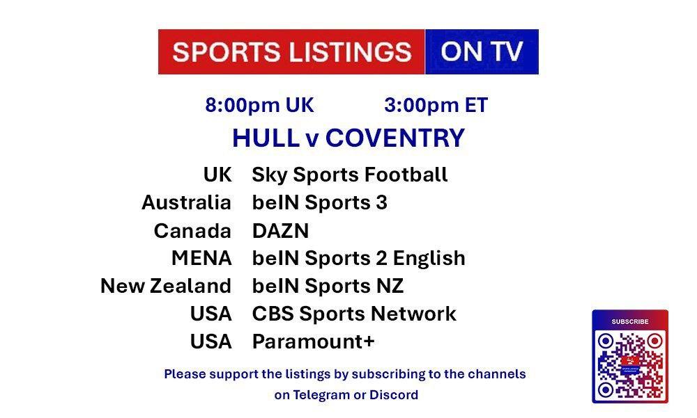 | 20:00 | Hull City v Coventry City | Championship | Sky Sports Football, Sky Sports Ultra HDR |