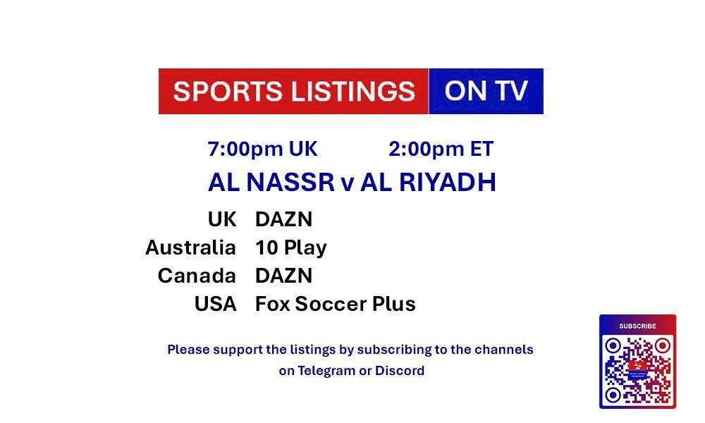| 19:00 | Al-Nassr v Al-Riyadh | Saudi Pro League | DAZN |