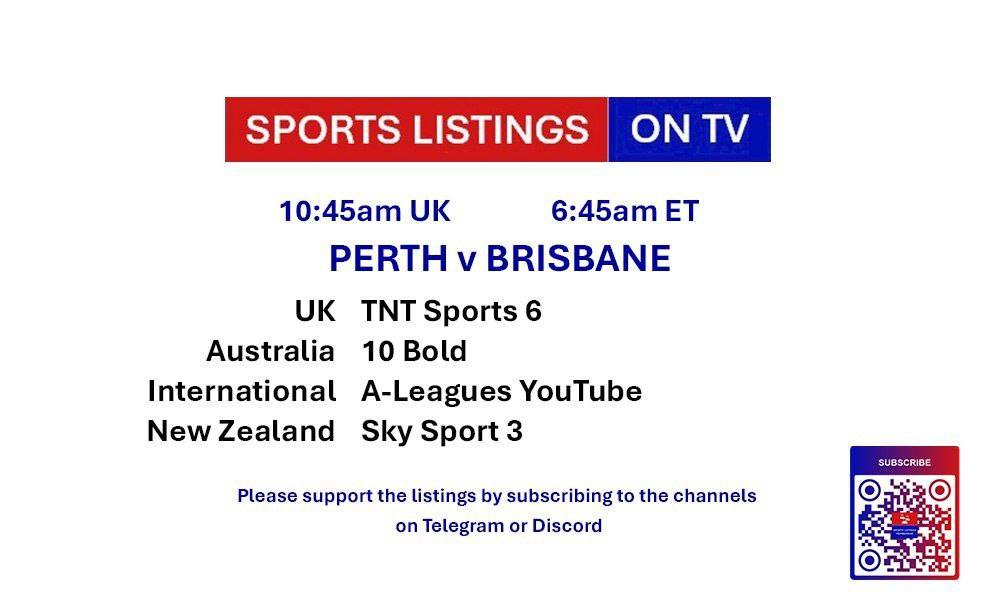 | 10:45 | Perth Glory v Brisbane Roar | A-League Men | TNT Sports 6 |