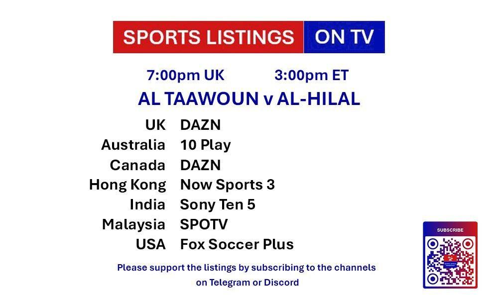 | 19:00 | Al-Taawoun v Al-Hilal | Saudi Pro League | DAZN |