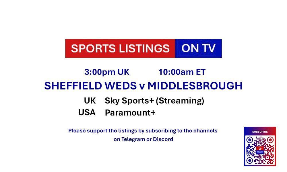 | 15:00 | Sheffield Wednesday v Middlesbrough | Championship | Sky Sports+ |