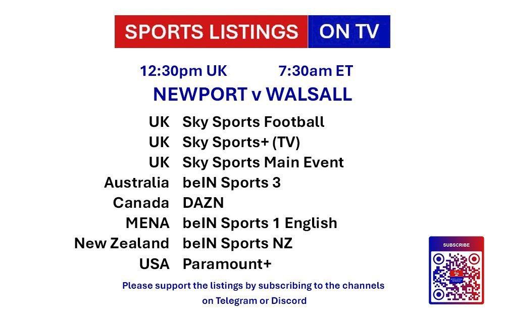 | 12:30 | Newport County v Walsall | League Two | Sky Sports Main Event, Sky Sports Football, Sky Sports Ultra HDR |