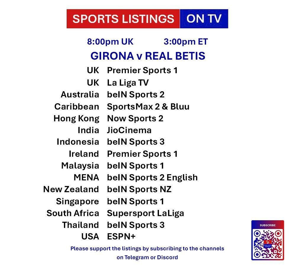 | 20:00 | Girona v Real Betis | La Liga | Premier Sports 1, LALIGATV |