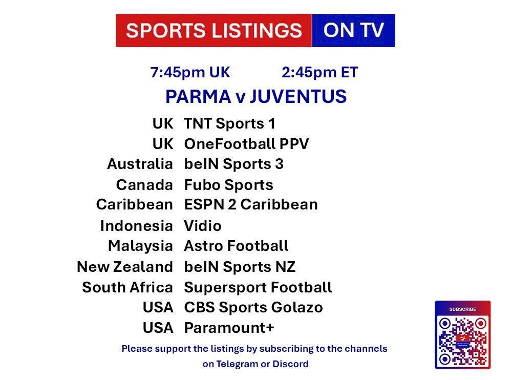| 19:45 | Parma v Juventus | Serie A | TNT Sports 1, OneFootball |