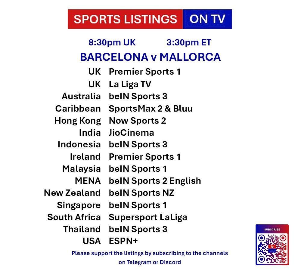 20:30Barcelona v Real MallorcaLa LigaPremier Sports 1, LALIGATV