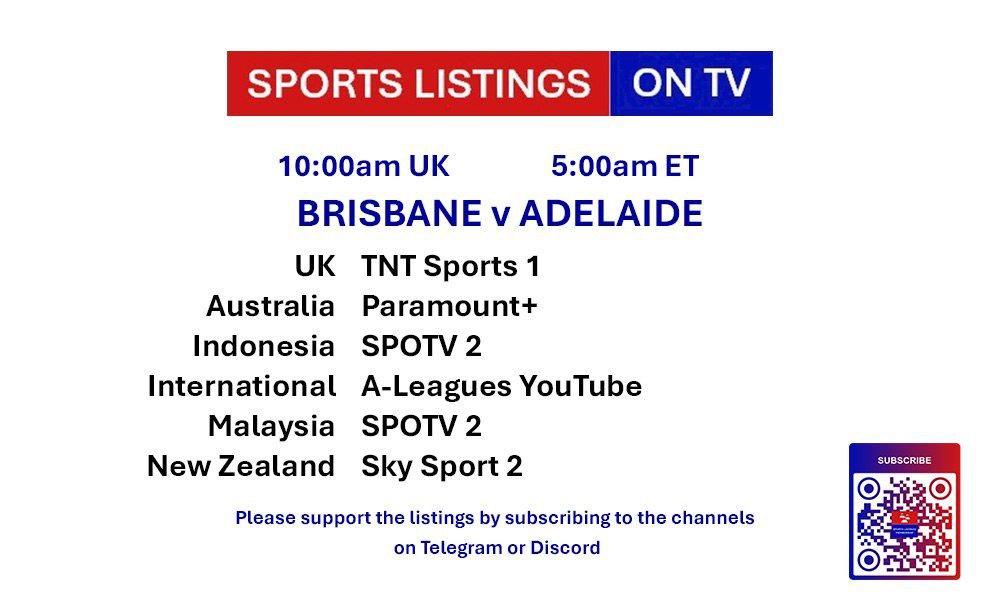 | 10:00 | Brisbane Roar v Adelaide United | A-League Men | TNT Sports 1 |
