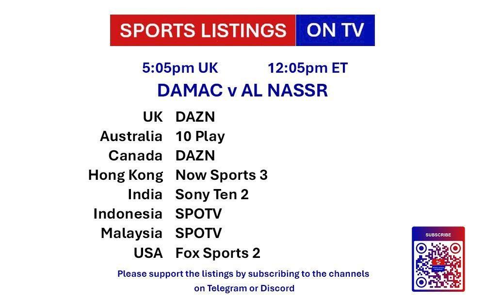 | 19:00 | Damac v Al-Nassr | Saudi Pro League | DAZN |