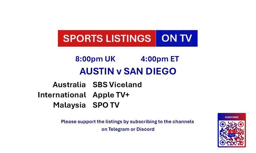 | 20:00 | Austin FC v San Diego FC | MLS | Apple TV |