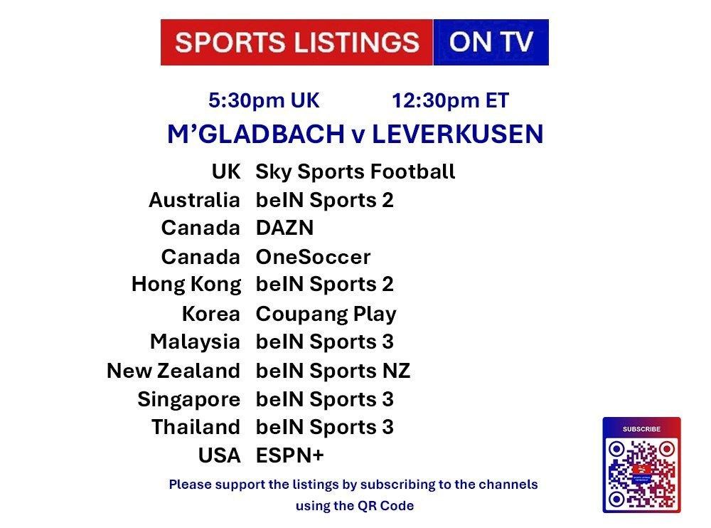 | 17:30⭐ | Borussia Mönchengladbach v Bayer Leverkusen | Bundesliga | Sky Sports Football 📅 |