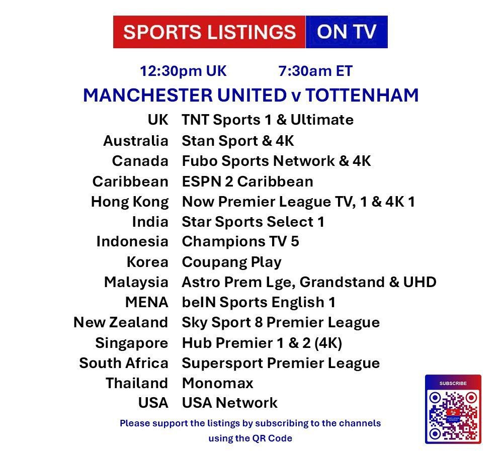 | 12:30⭐ | Manchester United v Tottenham Hotspur | Premier League | TNT Sports 1, TNT Sports Ultimate 📅 |
