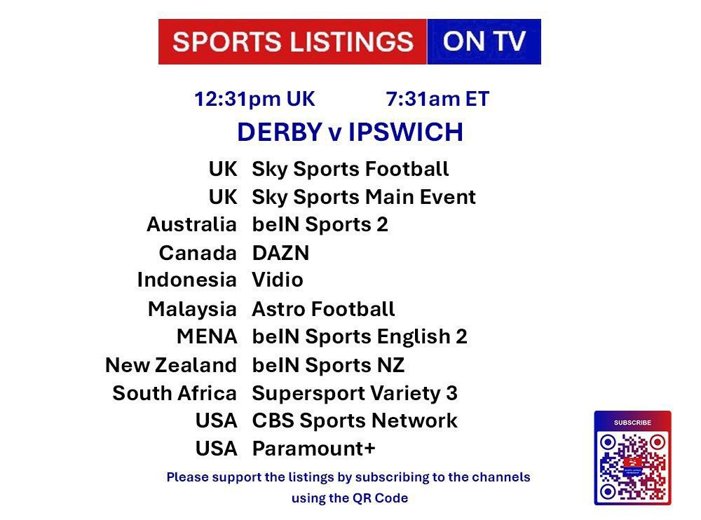 | 12:31⭐ | Derby County v Ipswich Town | Championship | Sky Sports Football, Sky Sports Main Event, Sky Sports Ultra HDR 📅 |