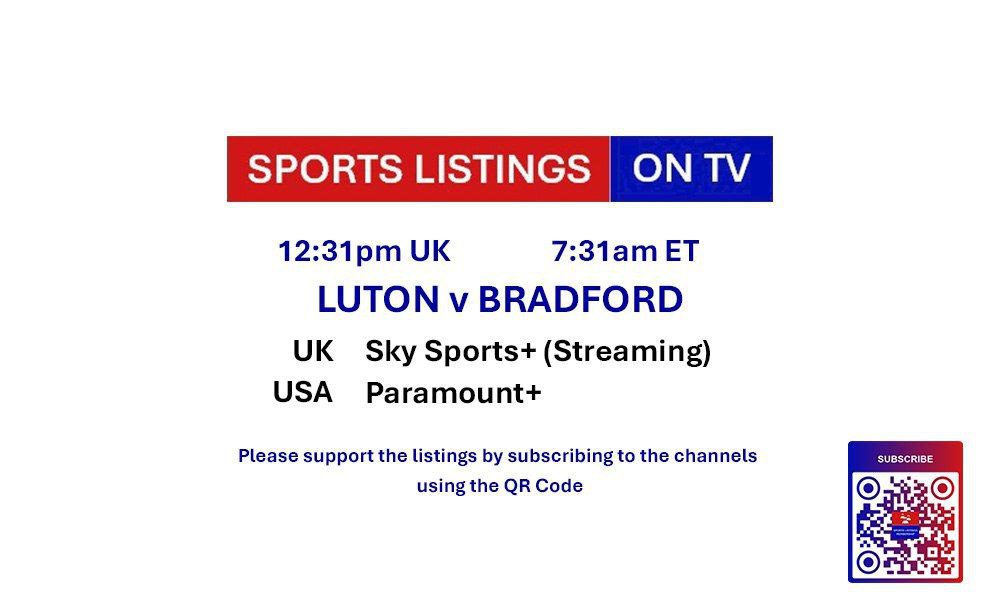 | 12:31 | Luton Town v Bradford City | League One | Sky Sports+ 📅 |