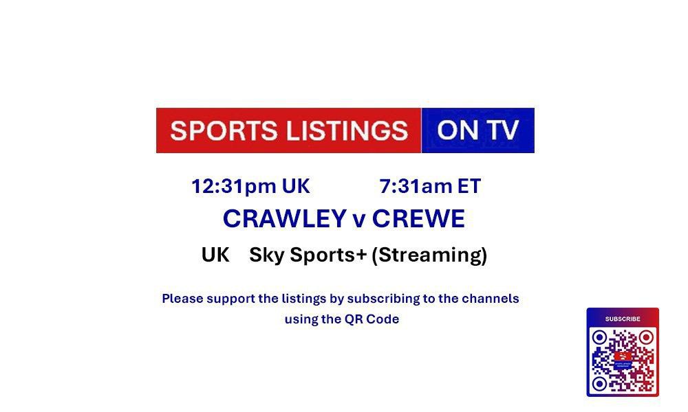 | 12:31 | Crawley Town v Crewe Alexandra | League Two | Sky Sports+ 📅 |