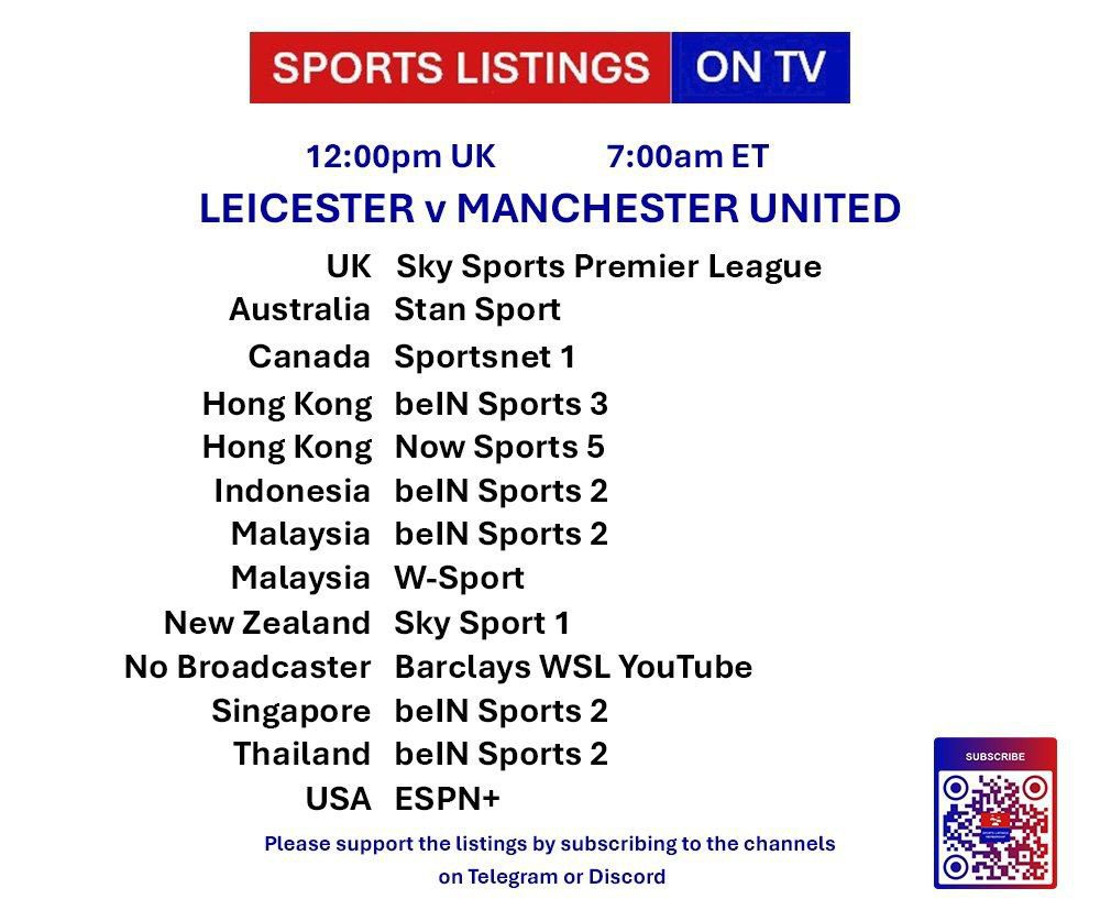 | 12:00⭐ | Leicester City Women v Manchester United Women | Women's Super League | Sky Sports Premier League, Sky Sports Ultra HDR 📅 |